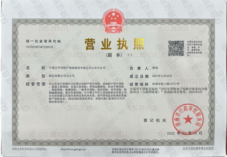 2. 承保公司:中国太平洋财产保险股份有限公司